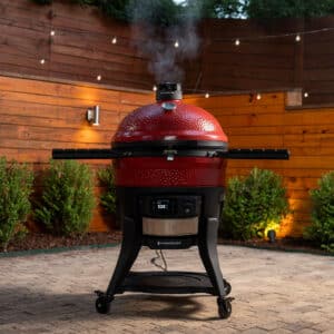 Upplev den revolutionerande innovationen av keramisk kolgrillning, nu i en 61 cm i diameter Big Joe Konnected Joe Digital kolsgrill och rök. Denna innovativa keramiska grill är utformad för enkelhet och precision och har en automatisk Firestarter (AFS™) som tänder kolet med en knapptryckning. Ställ in temperaturen med den digitala Kontrol Board™ eller Kamado Joe-appen och låt Kontrol Fan™ hålla värmen åt dig. Med mångsidiga matlagningsfunktioner låter Big Joe Konnected Joe dig njuta av hela utbudet av Kamado grill- och rökupplevelserna. Välj Automatiskt tillagningsläge för fullständig digital kontroll eller byt till Klassiskt läge för den autentiska Kamado-upplevelsen. Höj matlagningen utomhus med den ultimata keramiska grillen från Kamado Joe.